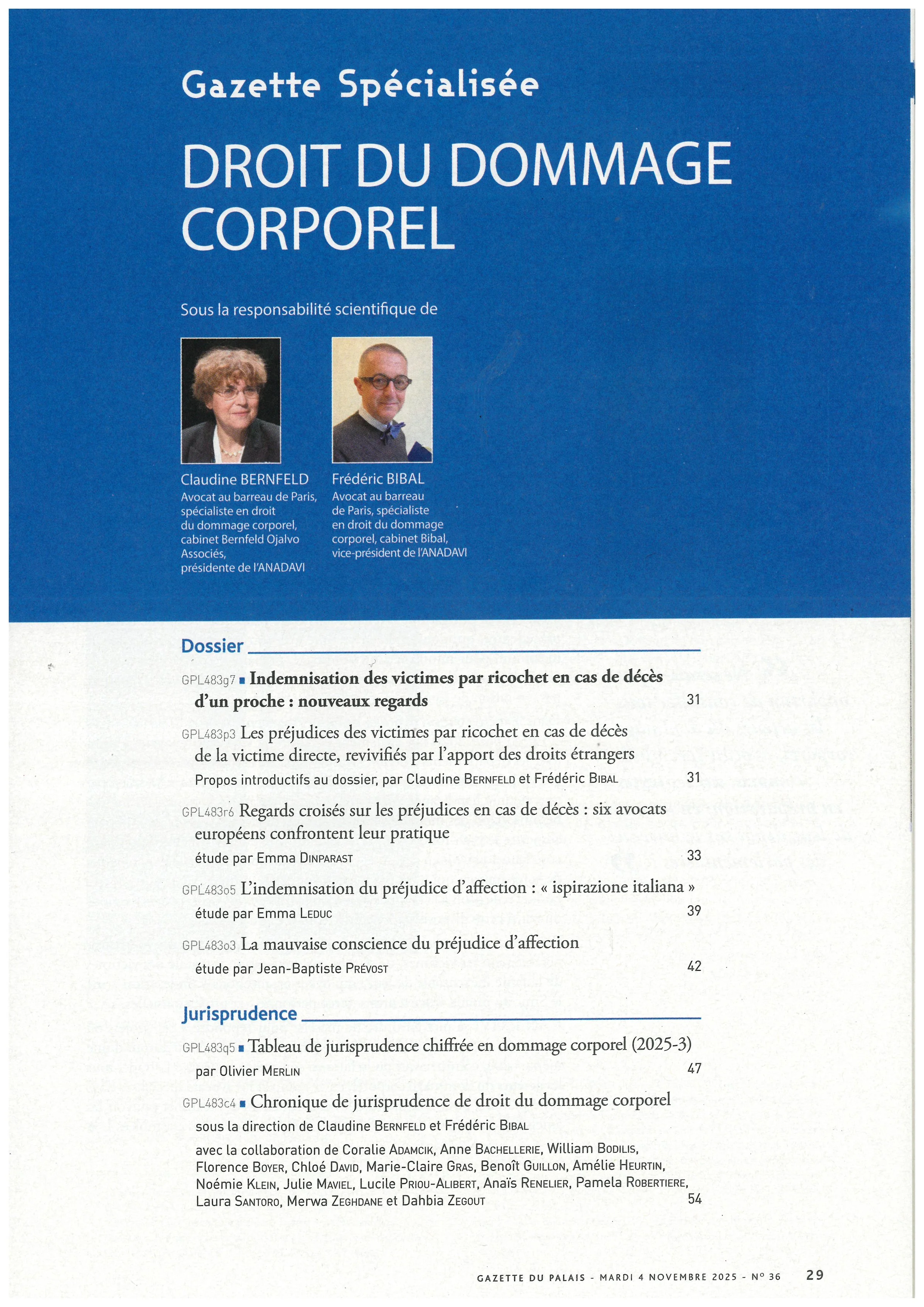 Tableau de jurisprudence chiffrée en dommage corporel (2025-3)